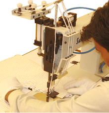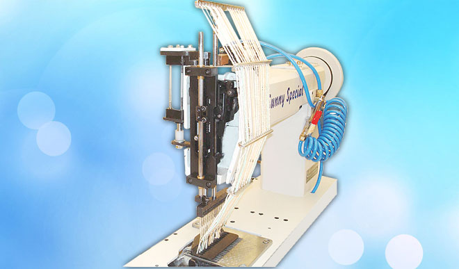 We can turn the maximum tufting width up to 2 1/2 inches in a 12 needle machine. As an illustration a 12 needle by 3/8 inch (10mm ) gauge machine would produce 4 1/8 inch (105 mm) tufting width and would only be suitable for straight line tufting.